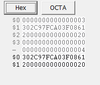 Next to it, on the right, there is the format button. Pressing it will change the format used to display the memory content. The choices are